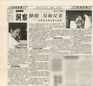 1995年9月30日《深圳晚报》刊登“洞察肺腑易如反掌”